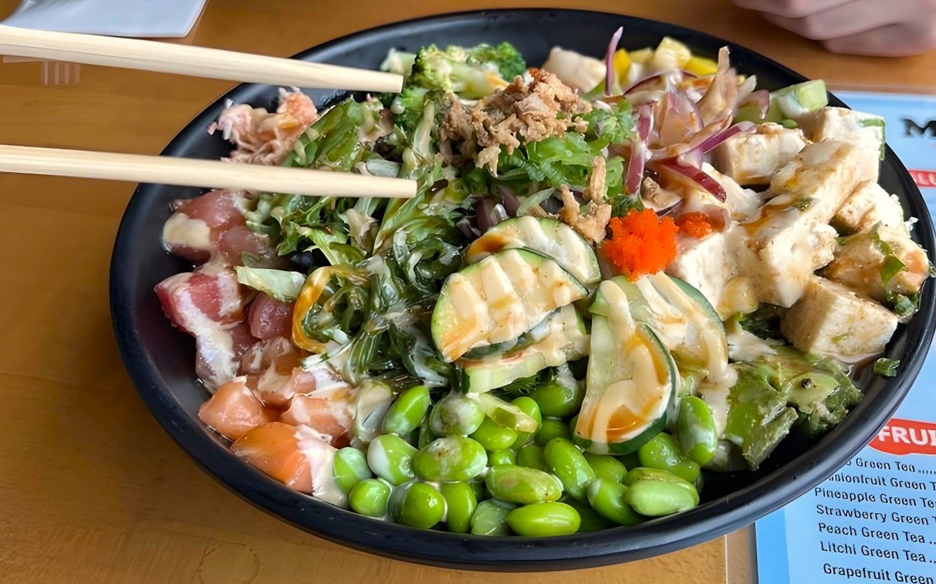 We are known for Poke, Chicken Ramen, Calamari, Shrimp, Honeydew Milk Tea, Shio Ramen, Seafood Ramen, Salmon Poke Bowl, Asian Food, Vegetarian Food, Tofu, Gyoza, Poke Bowls, Matcha Milk Tea, Japanese Food, Coconut Milk Tea, Shoyu Ramen, Matcha, Tonkatsu, Takoyaki, Salads, Miso, Edamame, Karaage, Salmon, Thai Milk Tea, Tempura, Poke Bowl, Brown Sugar Boba, Taro, Boba, Jasmine Milk Tea, Miso Ramen, Milk Tea, and Curry